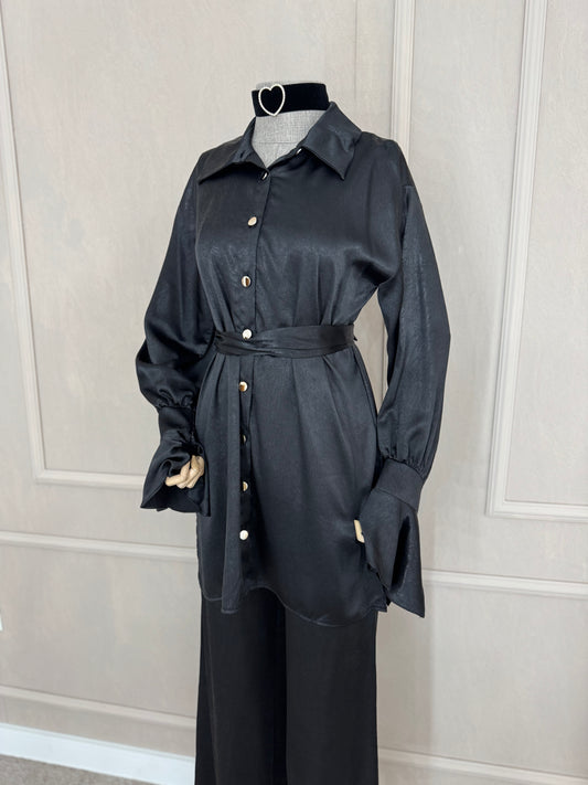 RasprodajaCrni komplet sa volanima na rukavu